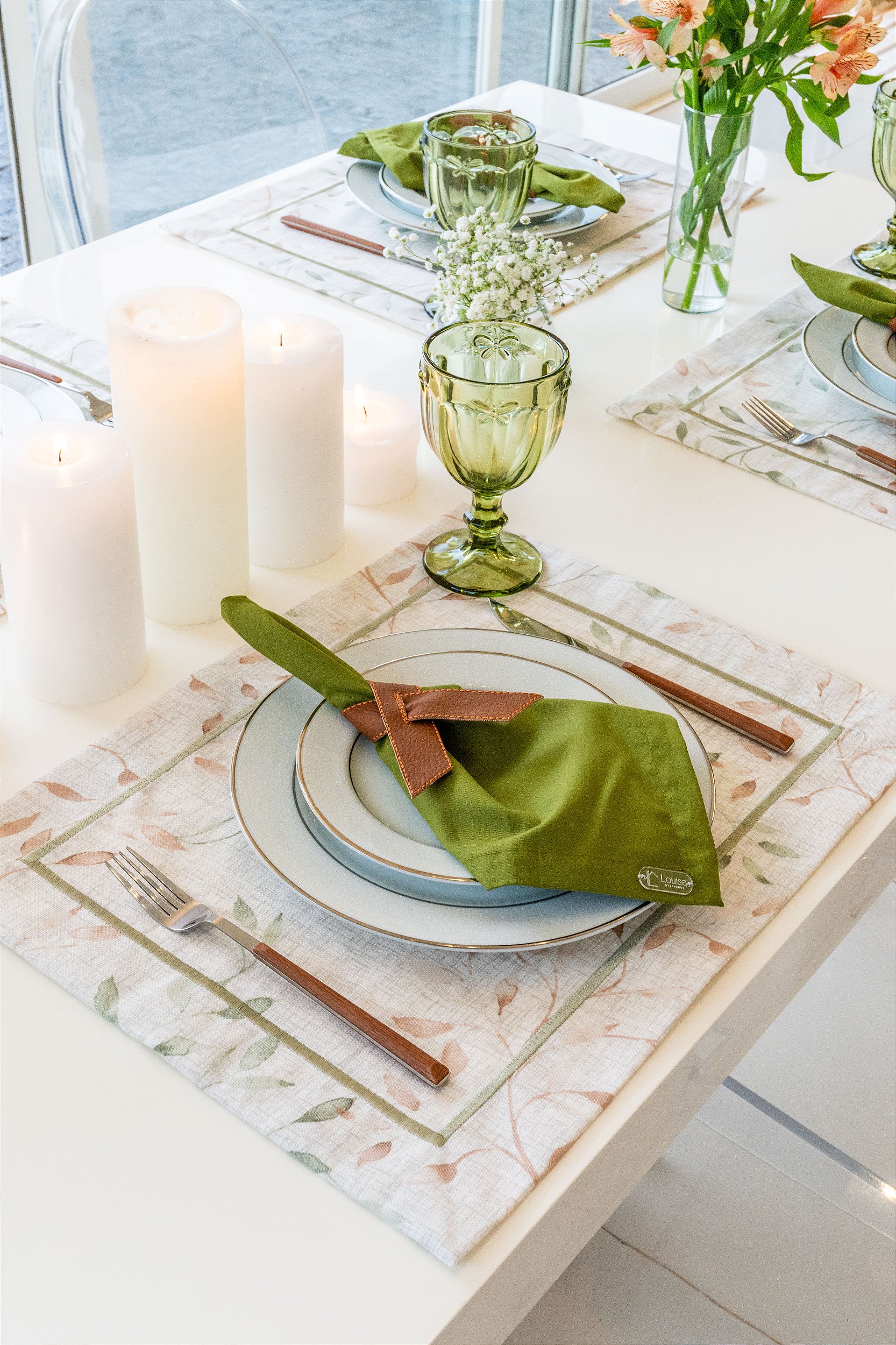 Sua estampa delicada em tons neutros é extremamente versátil, podendo ser usada sozinha ou combinada com jogos americanos lisos, criando composições harmoniosas e encantadoras.