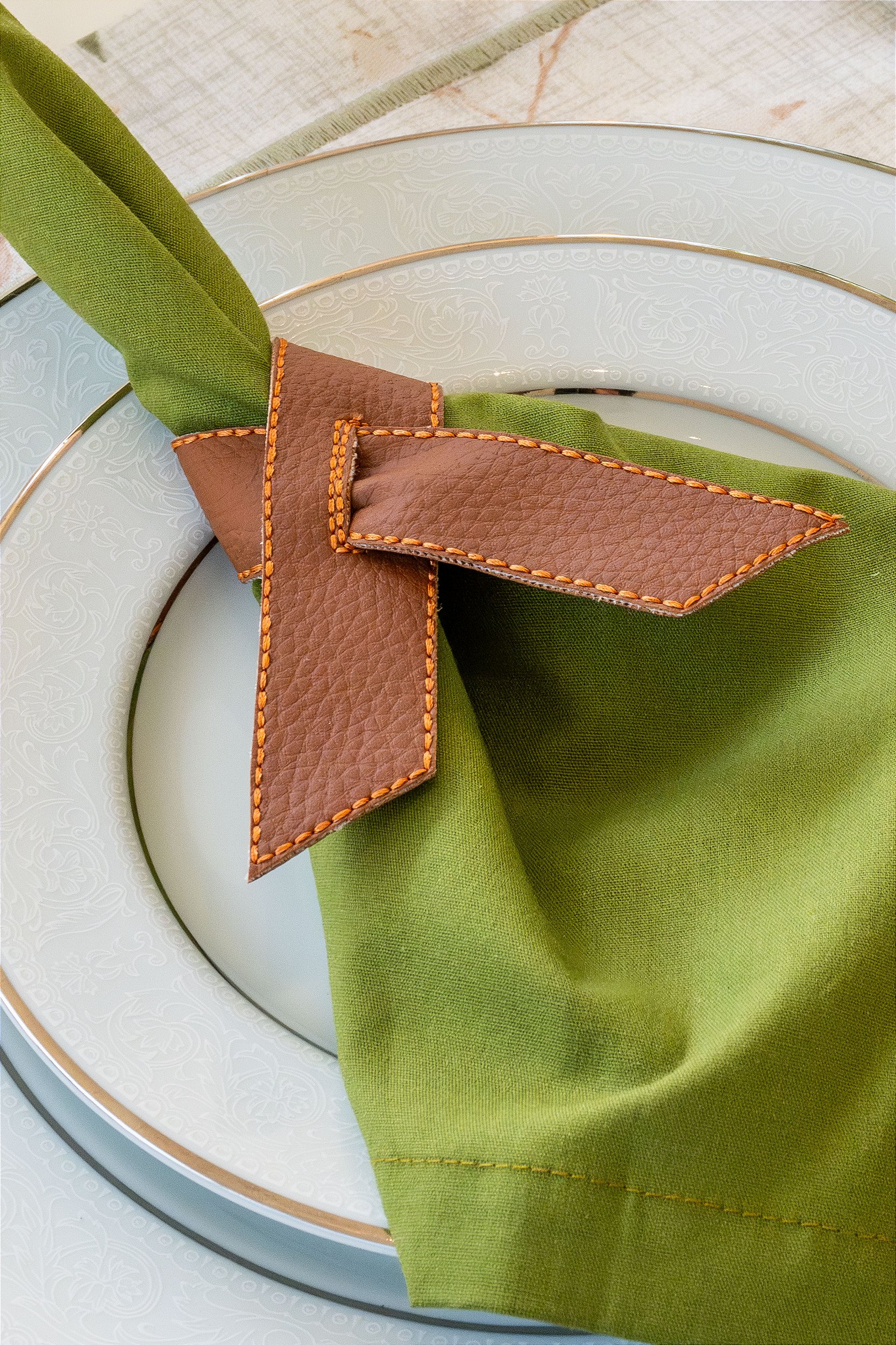 O Porta-Guardanapo Laço Couro, em couro sintético ecológico na cor caramelo, é um item atemporal que, com seu design moderno e refinado, eleva qualquer composição.